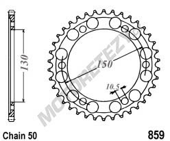 Kalená rozeta THF (zadní řetězové kolo), typ 0859-38, šířka řetězu 530