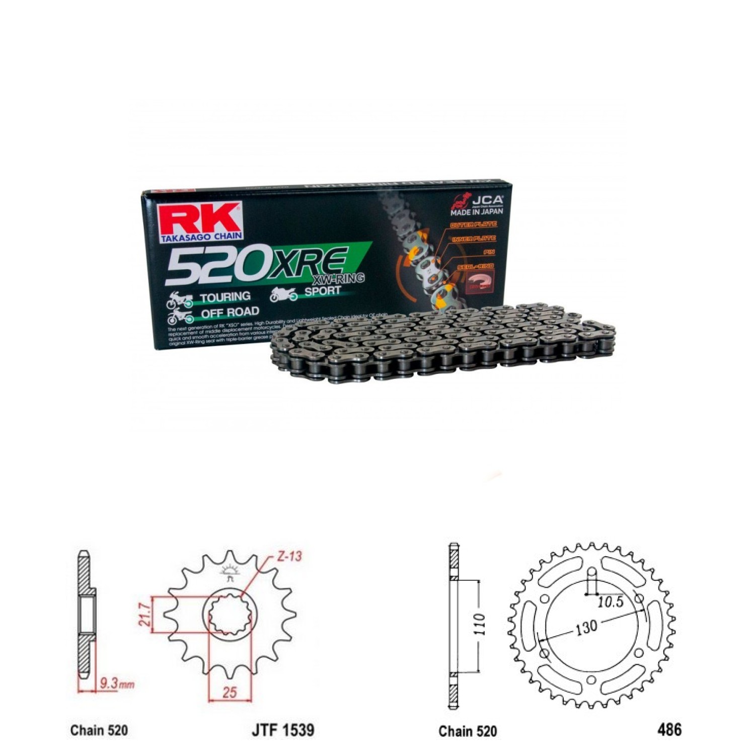 RK 520 XRE - střední řada RK řetěz s těsnícím "XW" kroužkem, ideální pro silnější moto v běžném provozu