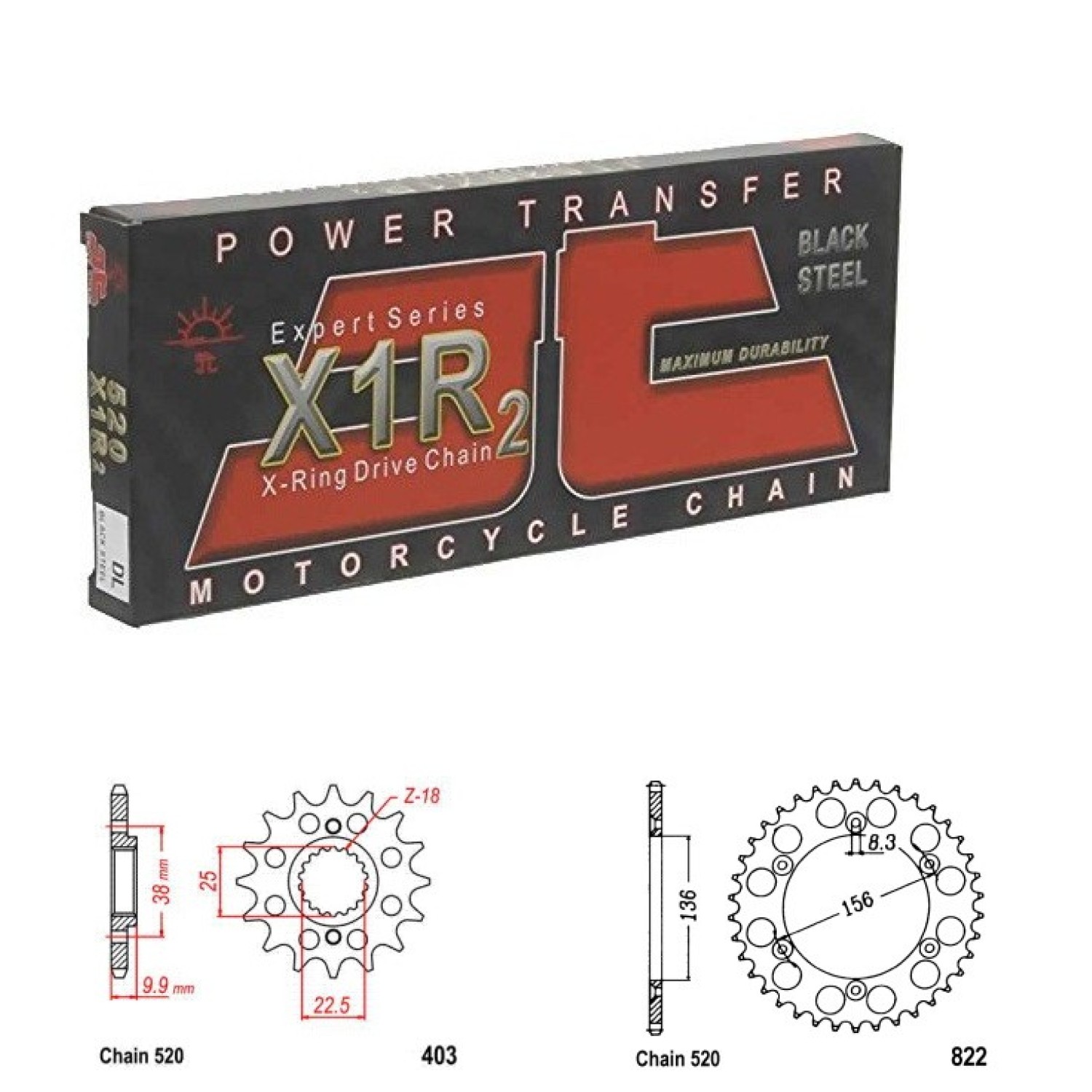 Řetězová sada JT X-ring, HUSQVARNA 449 TE rok výroby 2011-2012, Řetěz JT 520 X1R, X-ring, počet článků 108, kolečko 403-15 zubů, rozeta 0822-51 zubů.