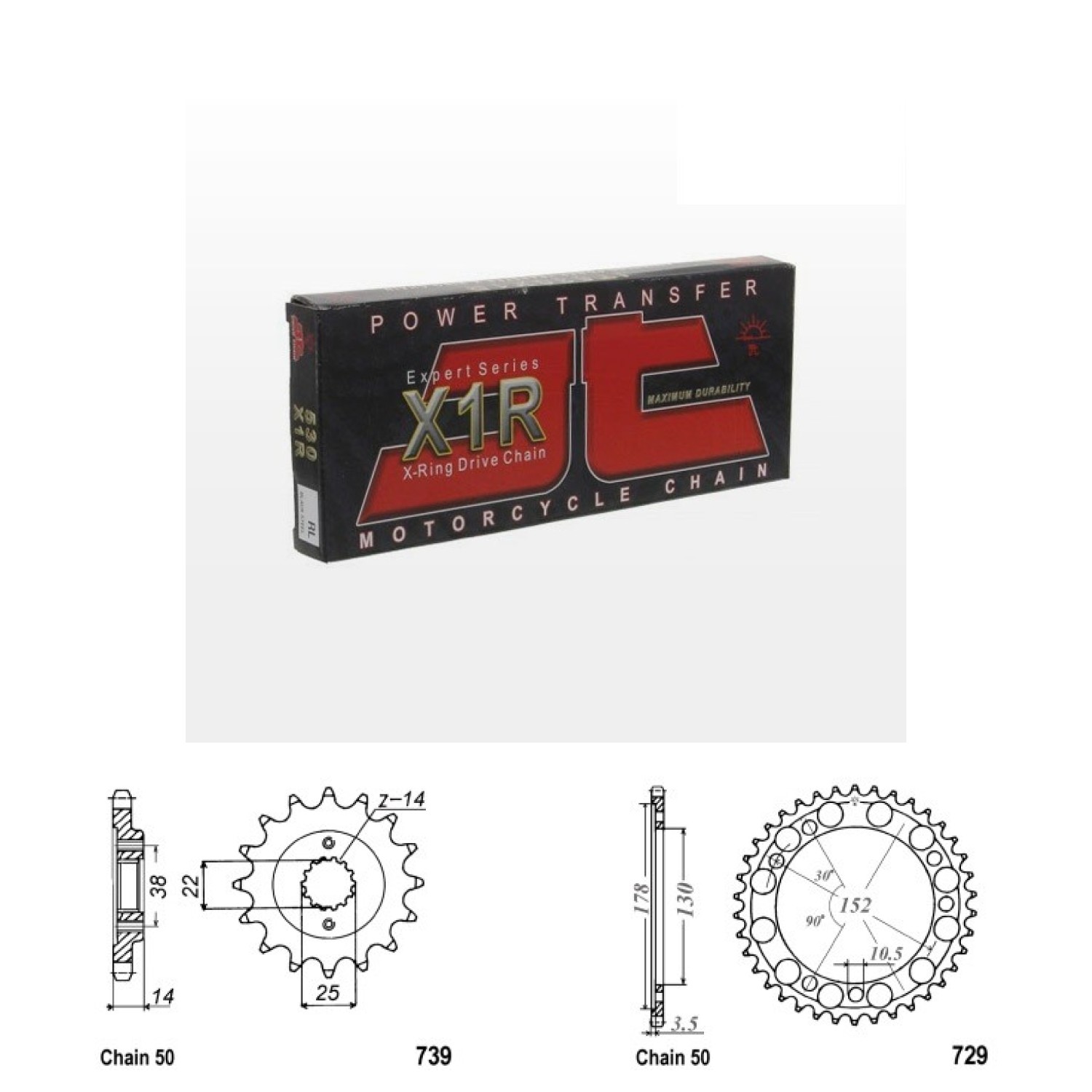 Požadavek jiného počtu zubů řetězových kol (zdarma) případně uveďte do poznámky při objednávce.