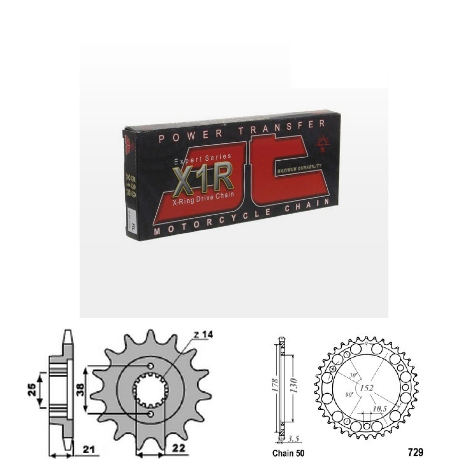 Řetězová sada JT X-ring, CAGIVA 900 Elefant IE rok výroby 1993-1997, Řetěz JT 530 X1R, X-ring, počet článků 108, kolečko P2079-15 zubů, rozeta 0729-46 zubů.