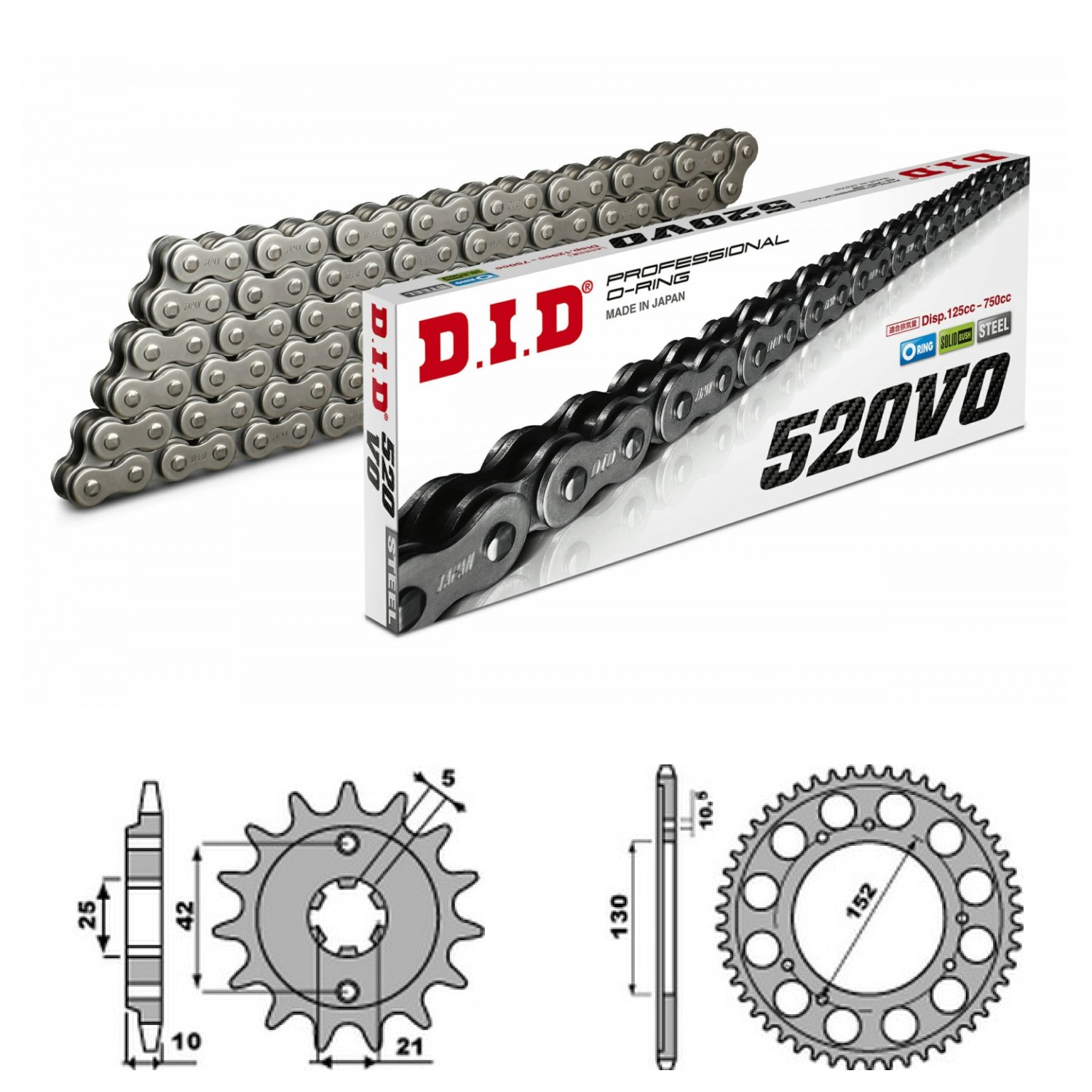 DID Řetězová sada D.I.D O-ring, CAGIVA 500 Canyon rok výroby 1999-2001, Řetěz DID 520 V0, O-ring, počet článků 112, kolečko P726-15 zubů, rozeta P4376-46 zubů.