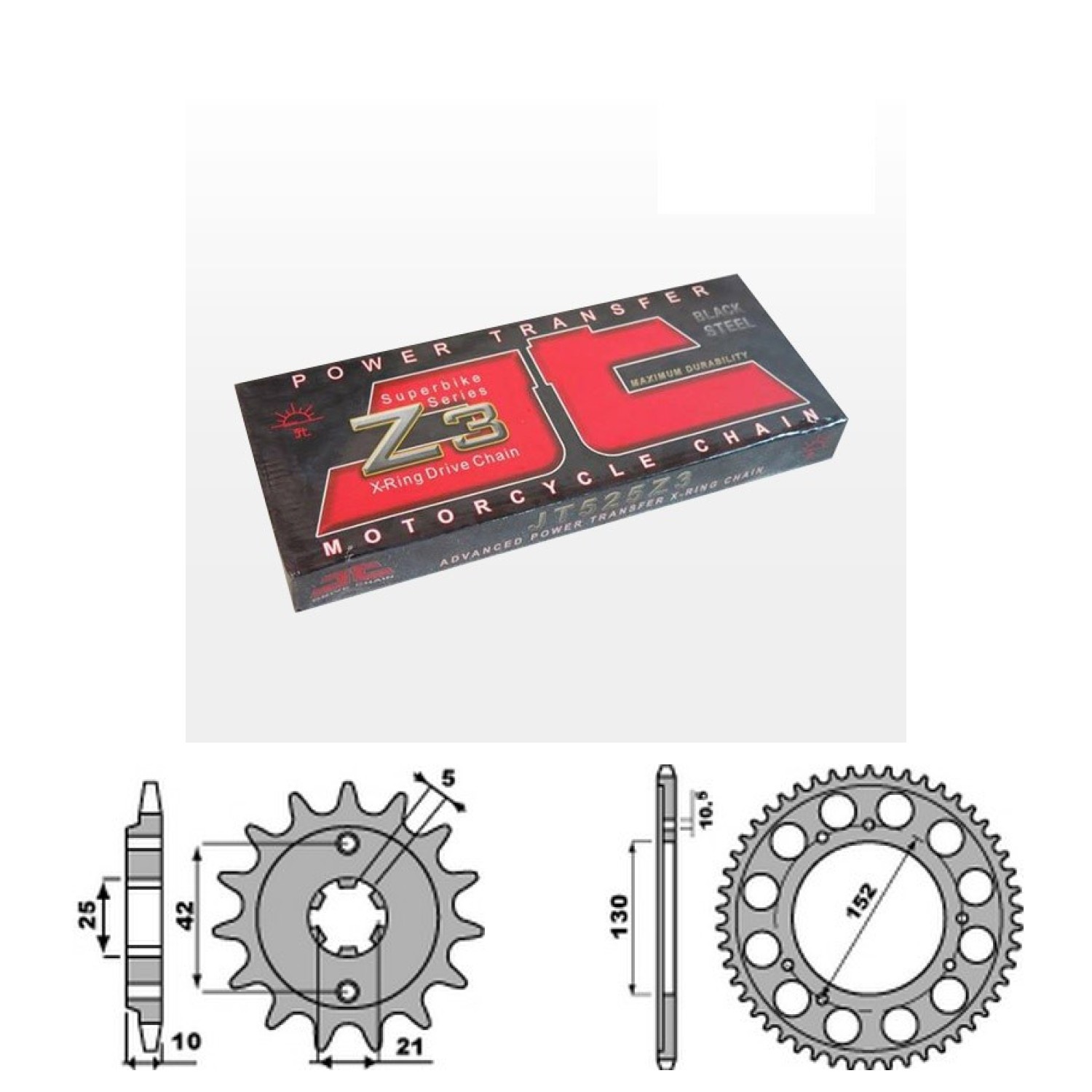 Na úvod » Vyhledávání podle moto » Řetězové sady » Řetězová sada JT ZX-ring CAGIVA 500 Canyon rok 99-01