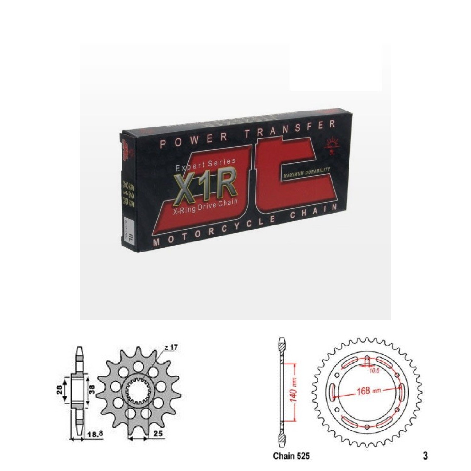 Řetězová sada JT X-ring, BMW F 800 R rok výroby 2011-2014, Řetěz JT 525 X1R, X-ring, počet článků 120, kolečko 405-20 zubů, rozeta 0003-47 zubů.