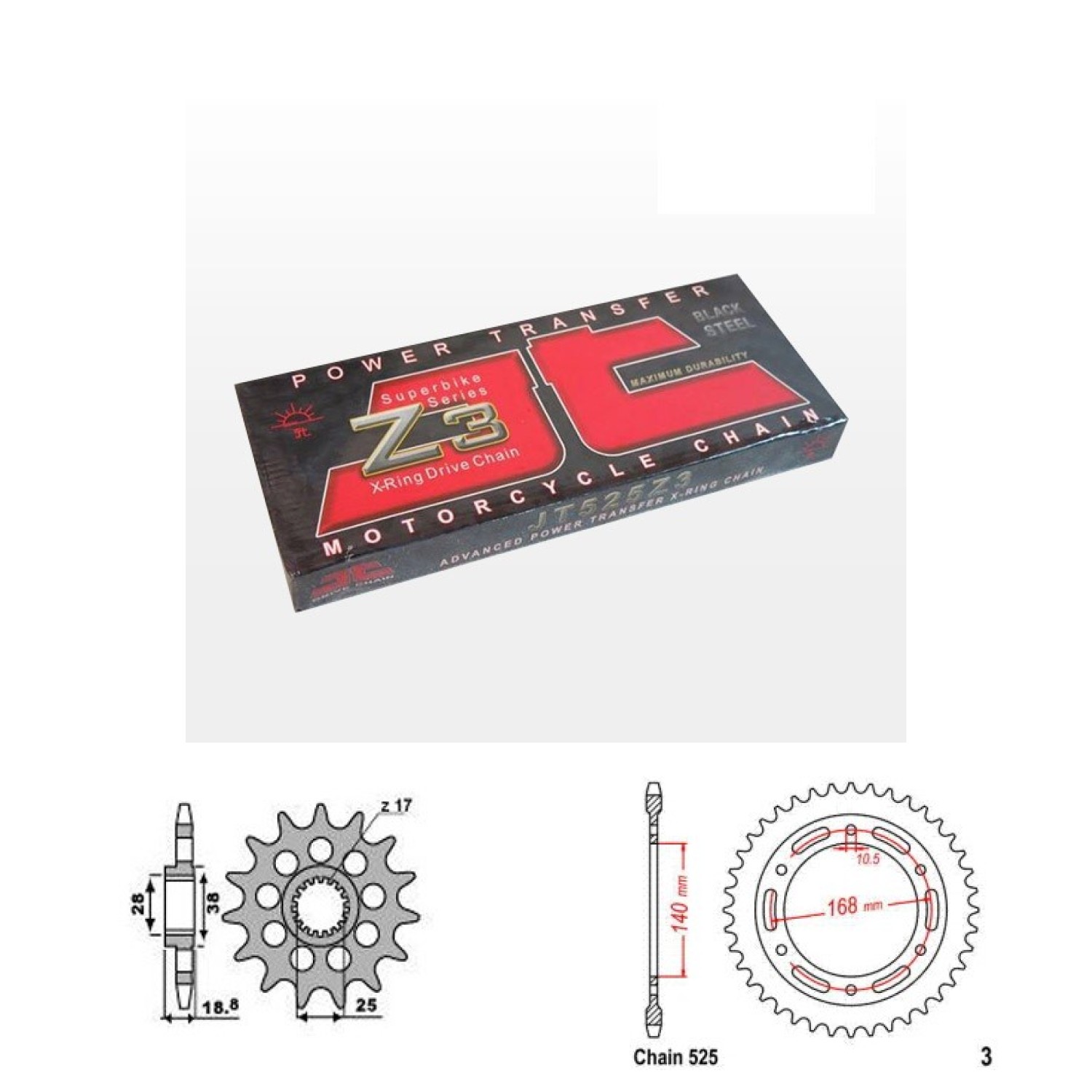Řetězová sada JT ZX-ring, BMW F 800 R rok výroby 2011-2014, Řetěz JT 525 Z3, X-ring, počet článků 120, kolečko 405-20 zubů, rozeta 0003-47 zubů.