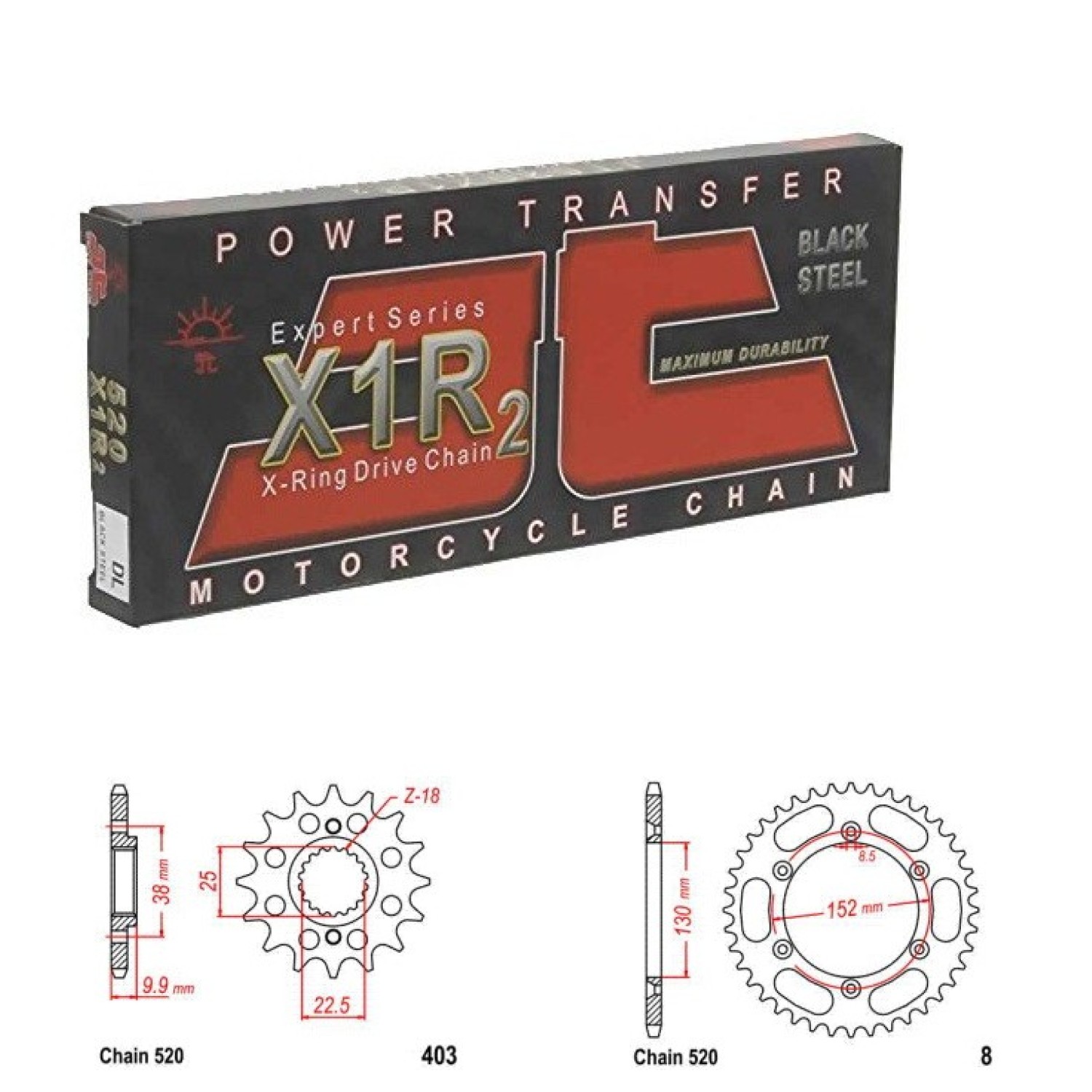 Řetězová sada JT X-ring, BMW G 450 X rok výroby 2009-2012, Řetěz JT 520 X1R, X-ring, počet článků 118, kolečko 403-15 zubů, rozeta 0008-51 zubů.