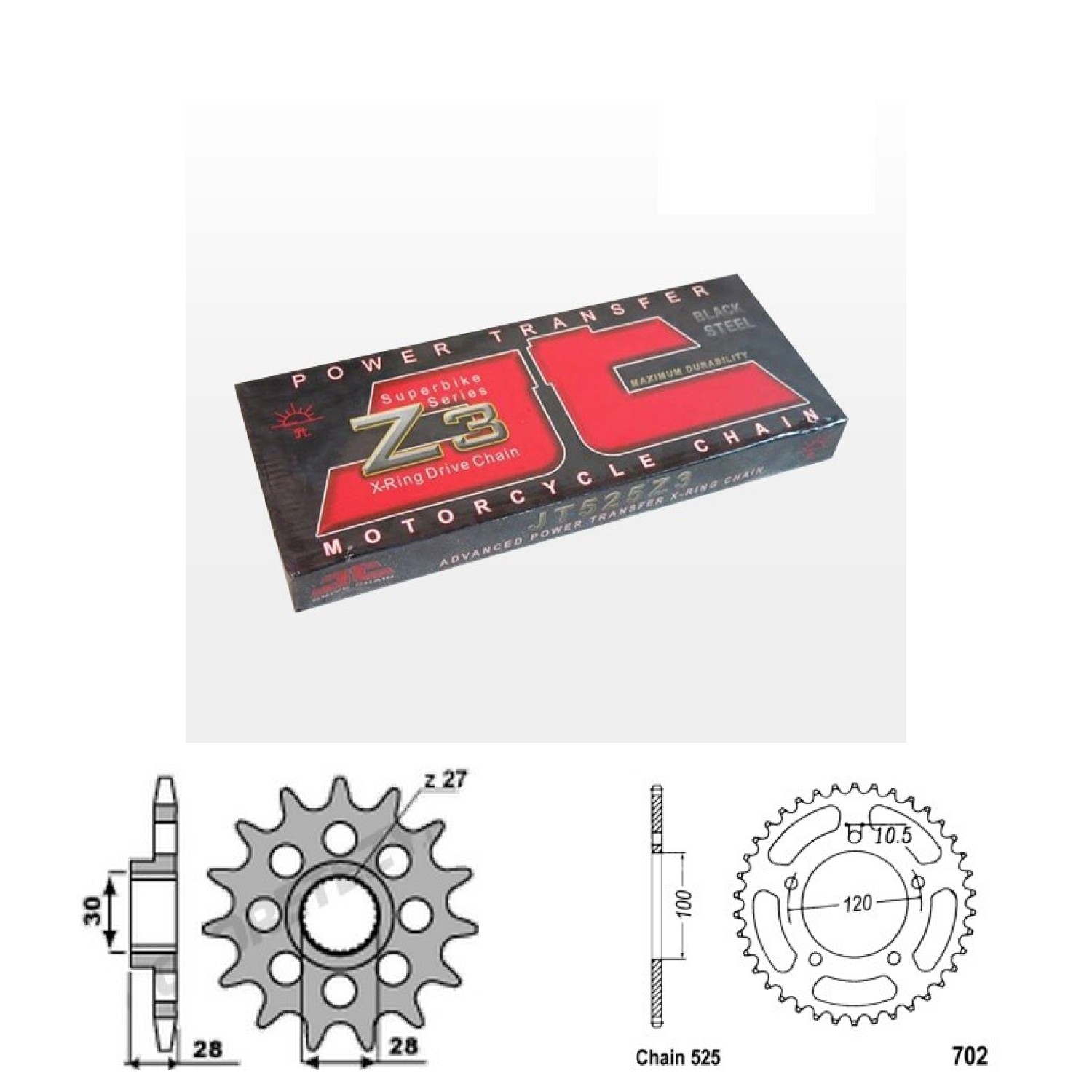 Řetězová sada JT ZX-ring, APRILIA 850 Mana rok výroby 2008-2016, Řetěz JT 525 Z3, X-ring, počet článků 100, kolečko P2148-18 zubů, rozeta 0702-40 zubů.