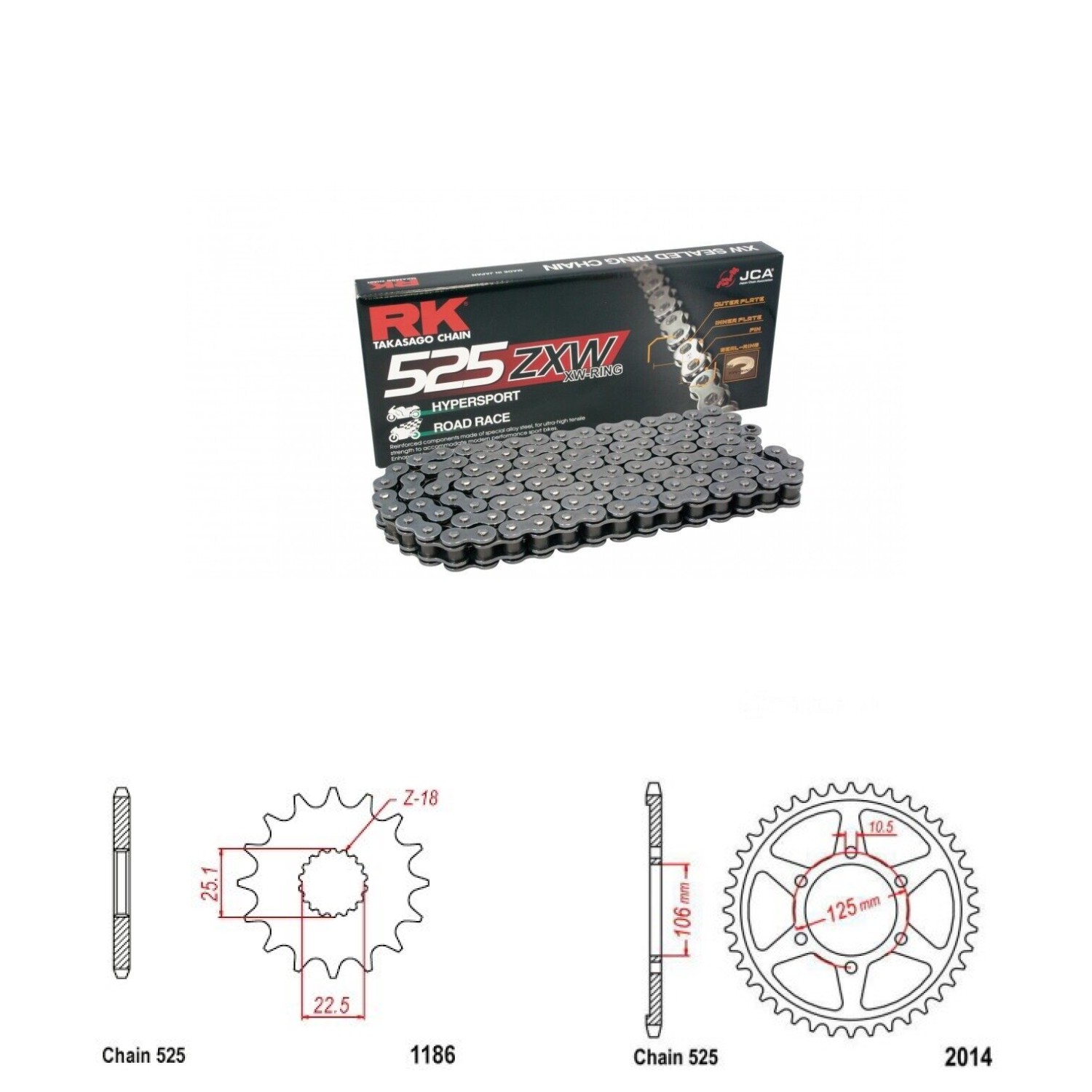 Řetězová sada RK ZW-ring, TRIUMPH 1200 Bonneville Bobber, Speedmaster rok výroby 2017-2023, Řetěz RK 525 ZXW, XW-ring, počet článků 108, kolečko 1186-17 zubů, rozeta 2014-37 zubů.
