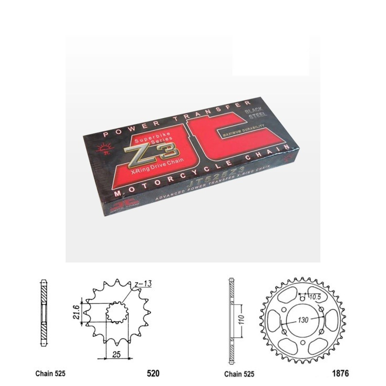 Řetězová sada JT ZX-ring, SUZUKI 800 GSX-8R rok výroby 2023-2025, Řetěz JT 525 Z3, X-ring, počet článků 120, kolečko 520-17 zubů, rozeta 1876-47 zubů.