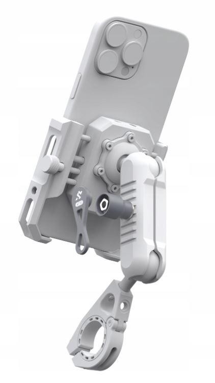 Všestranná kompatibilita s řídítky: Držák je kompatibilní se čtyřmi nejběžnějšími průměry řídítek: 32 mm, 28 mm, 25 mm a 22 mm. Vyměnitelné distanční kroužky umožňují uživatelům snadno přizpůsobit držák jejich vozidlu – jízdnímu kolu, motocyklu nebo skútru. Další plastový kroužek chrání řídítka před poškrábáním.