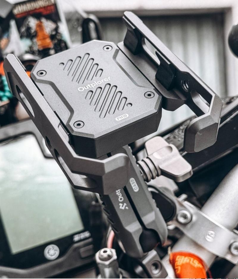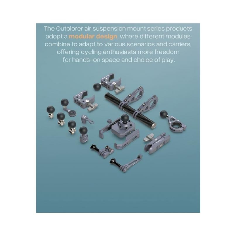 Outplorer P100-C – Inovativní držák na řídítka s pneumatickým odpružením a kulovou hlavou. Outplorer P100-C je univerzální držák na řídítka, který kombinuje přesné uchycení s ochranou telefonu nebo kamery proti vibracím. Díky kulovému kloubu, vyměnitelným distančním kroužkům a patentovanému systému vzduchového odpružení je držák ideální pro jízdu ve městě i v terénu.