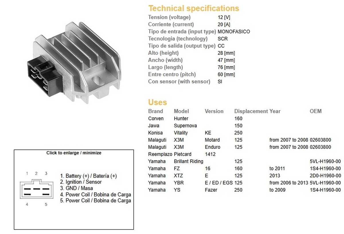 Regulátor dobíjení YAMAHA XT 125 R rok 08-12