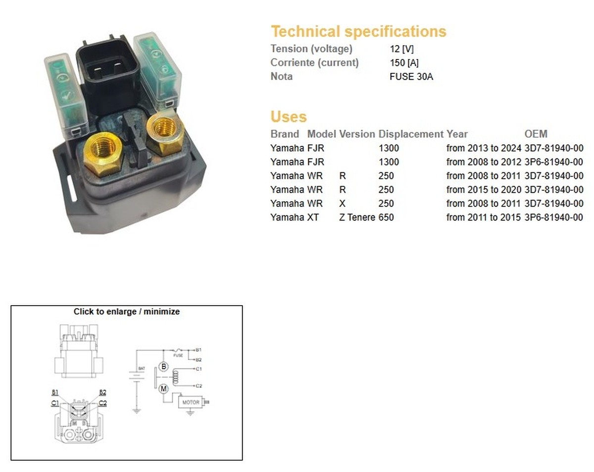 Relé startéru MR3 YAMAHA WR 250 R rok 08-20