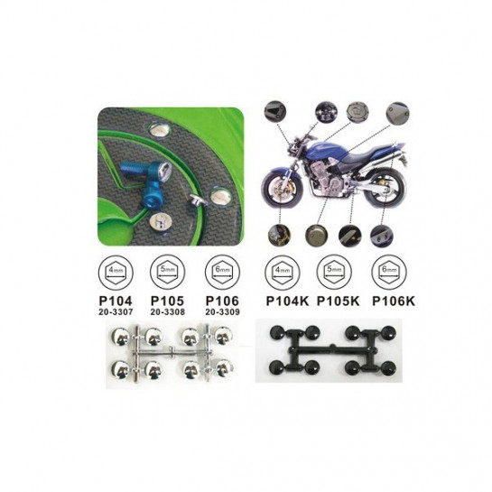 Imbusy pro plexi vč. Matic M5 v pryžovém pouzdře a podložek, OXFORD (stříbrný elox) 8 imbusů vč. matic M5 a podložek průměr 6mm sada vč. imbusu pro montáž
