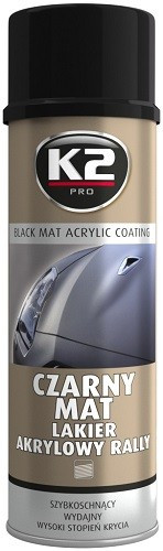 K2 akrylová barva ve spreji černá matná 500 ml Rychleschnoucí černá akrylová barva s matným výsledným efektem. Pro vnější i vnitřní použití. Je vhodná pro nátěry kovu, dřeva, plastu, papíru, cihel, sá ...